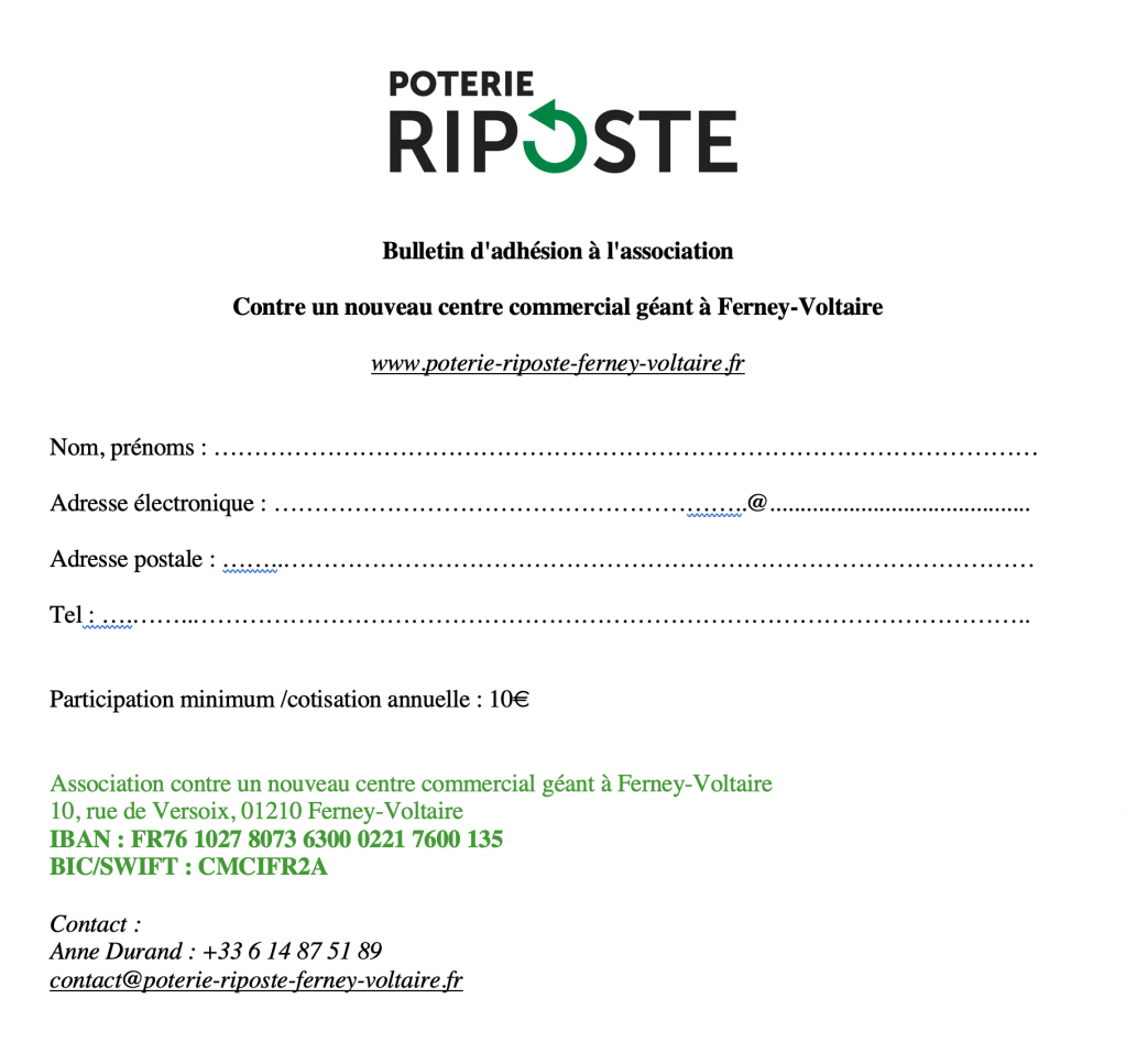 Association Contre un nouveau centre commercial géant à Ferney-Voltaire – Association Against a New Huge Shopping Mall in Ferney-Voltaire
