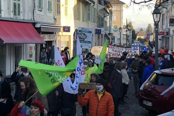29 janvier dernier, à Ferney-Voltaire (Ain), près de 400 manifestants ont battu le pavé pour dénoncer le futur centre commercial. D’ici 2025, 130 boutiques, 19 restaurants et un parking de 1 600 places devraient en effet voir le jour sur le secteur de la Poterie.