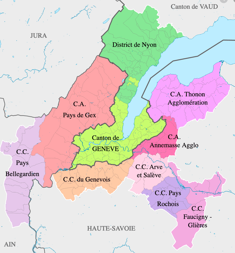 Le bassin franco-valdo-genevois du « Grand Genève » comptait en 2019 1’053’ 000 habitants, dont 423 000 habitent en France, un tiers environ entre Pays de Gex et Pays Bellegardien, et deux tiers dans les différentes agglomérations haut-savoyardes.