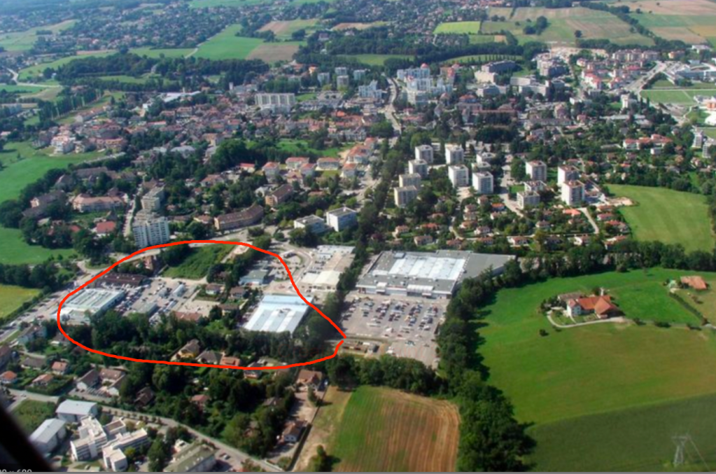 C’est dans cette zone périphérique de Ferney-Voltaire, juste après la douane en venant de l’aéroport et de Genève, que veut s’implanter le projet de nouveau centre commercial géant.
